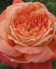 Цветки лососево-оранжевые, блюдцевидные, густо-махровые (до 120 лепестков) с лёгким ароматом.