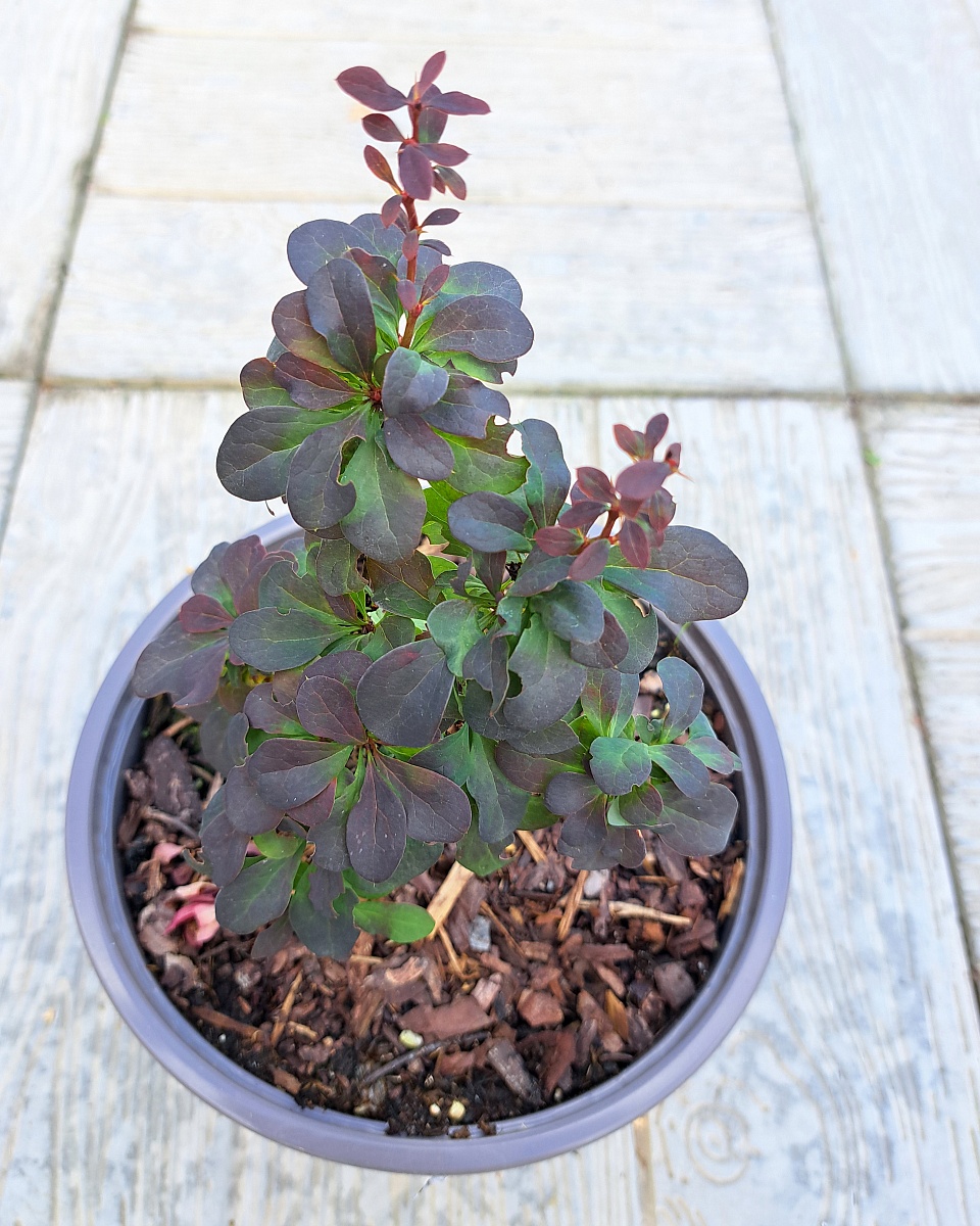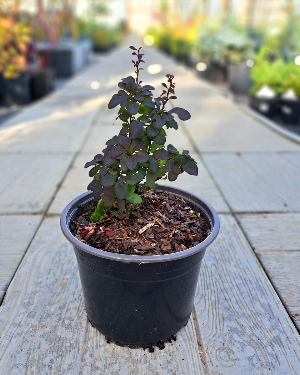 Очаровательный компактный сорт. Крона плотная, шаровидная, образована многочисленными прямостоящими побегами. Листья яйцевидной формы, при распускании зеленовато-розовые, постепенно темнеющие до пурпурно-фиолетового оттенка. Цветет в мае небольшими ароматными желтыми цветочками, замечательно контрастирующими с листвой. На их месте осенью созревают продолговатые ярко-красные плоды, использующиеся в кулинарии и являющиеся прекрасной подкормкой для птиц. Используют для создания красивых бордюрных посадок, украшения миксбордеров, берегов водоема, каменистых садов, рабаток. В групповой посадке сорт будет отлично сочетаться с хвойниками, цветущими кустарниками, лилейниками, гейхерами, астрами и другими многолетними цветами. Растение морозостойко, устойчиво к засухе, неприхотливо, обладает крепким иммунитетом. Для посадки подойдет солнечный участок с питательной, суглинистой или супесчаной, дренированной почвой.