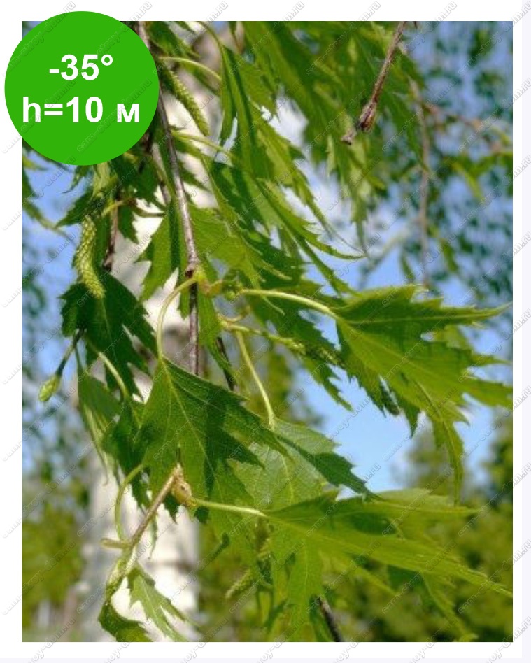 Красивое листопадное дерево с плакучей, сквозистой кроной и светло окрашенным стволом. Листья с неравнозубчатыми краями, глубоко рассеченные. В молодости смолистые, яркие, светло-зеленые, позже — зеленые, осенью — с ровной желтой окраской. Сережки пониклые, длинные.