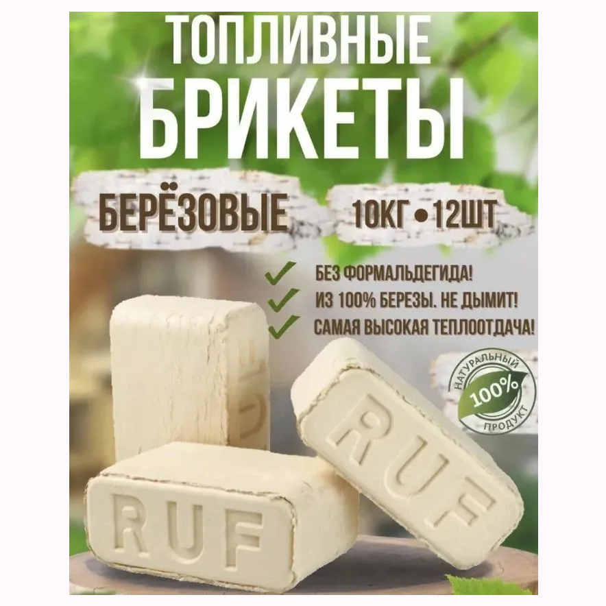 ✅ Брикеты RUF из березы: горят в 2 раза дольше, дают в 1,5 раза больше тепла и почти не оставляют золы.