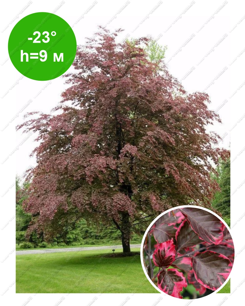Саженцы Бука лесного Триколор – находка для ландшафтных дизайнеров, которые часто используют дерево для декорирования участков и создания композиций благодаря яркой окраске листьев.Не стоит выбирать для посадки открытые места, поскольку саженцы не переносят жару.