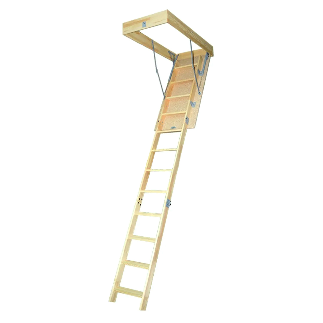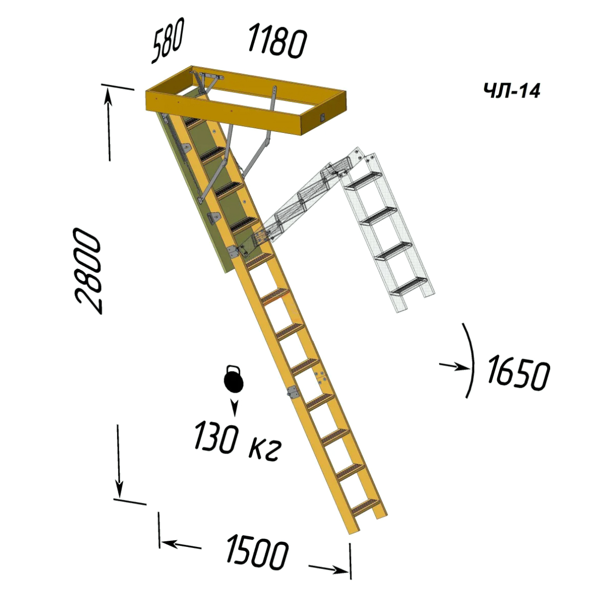 Чердачная лестница удобная и функциональная складная конструкция для подъема на чердак или мансарду. Применяется в условиях ограниченного пространства и невозможности поставить стационарную лестничную конструкцию. Изготовление деревянных элементов производится из сосны. В сложенном виде позволяет экономить пространство. Лестница состоит из 3-х секций, легко убирается в потолок. Проста в установке.