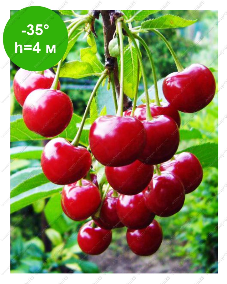 Сорт, любимый многими садоводами. Дерево средних размеров, во взрослом возрасте достигает высоты 4 м, с пирамидальной, достаточно разреженной кроной. Листья эллиптические, зеленые, до 12 см в длину. Цветение приходится на конец апреля - начало мая, цветы белые, собраны в небольшие соцветия до 5 шт. Урожай начинают собрать во второй половине июля.