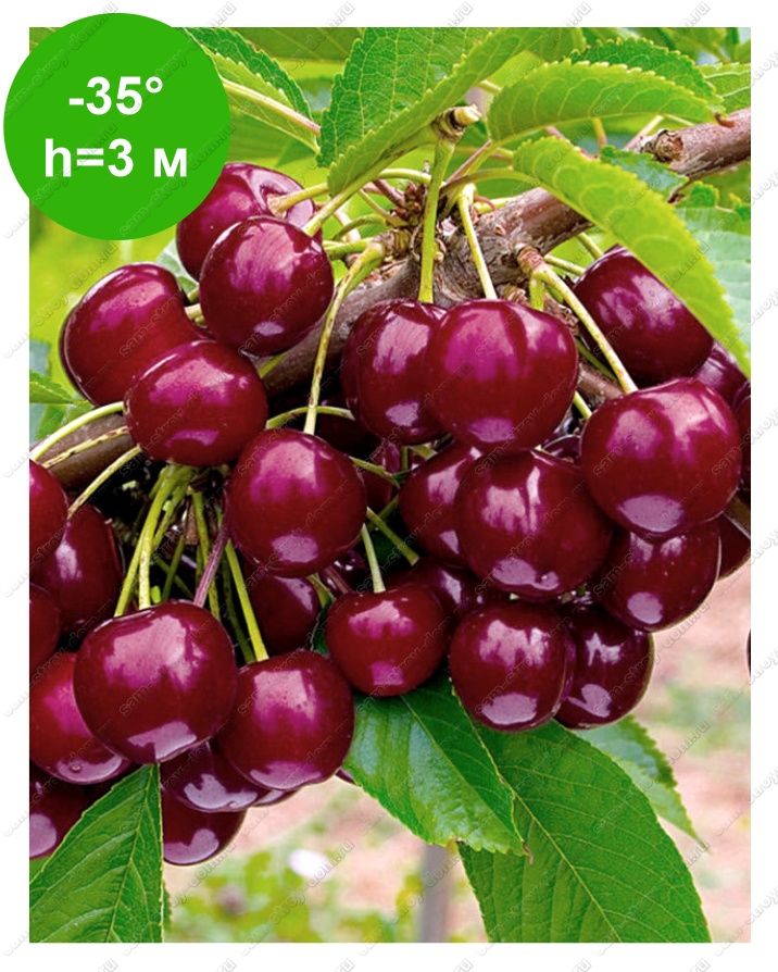 Сорт, заслуживший любовь многих садоводов России. Дерево средней высоты с округлой кроной и насыщенно-зеленой листвой. Цветет во второй половине мая белоснежными цветами, собранными в соцветия. Урожай начинают собирать с конца июня.