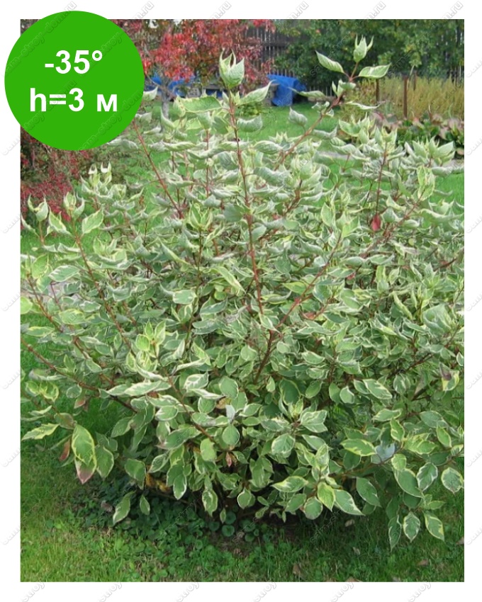 Декоративный сорт с раскидистой кроной и яркими красными или коралловыми побегами, позволяющими кустарнику сохранять декоративность и после листопада.