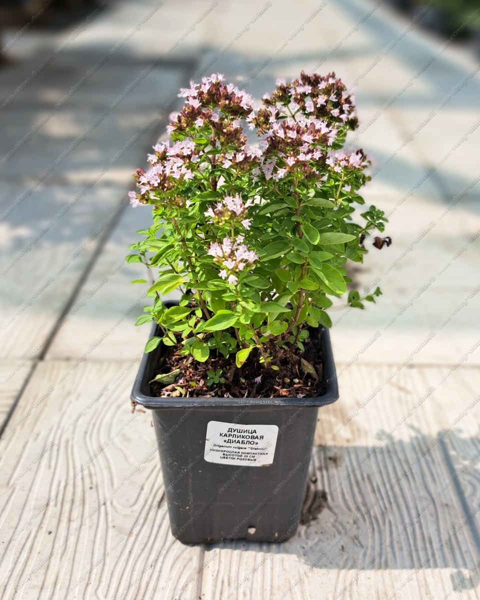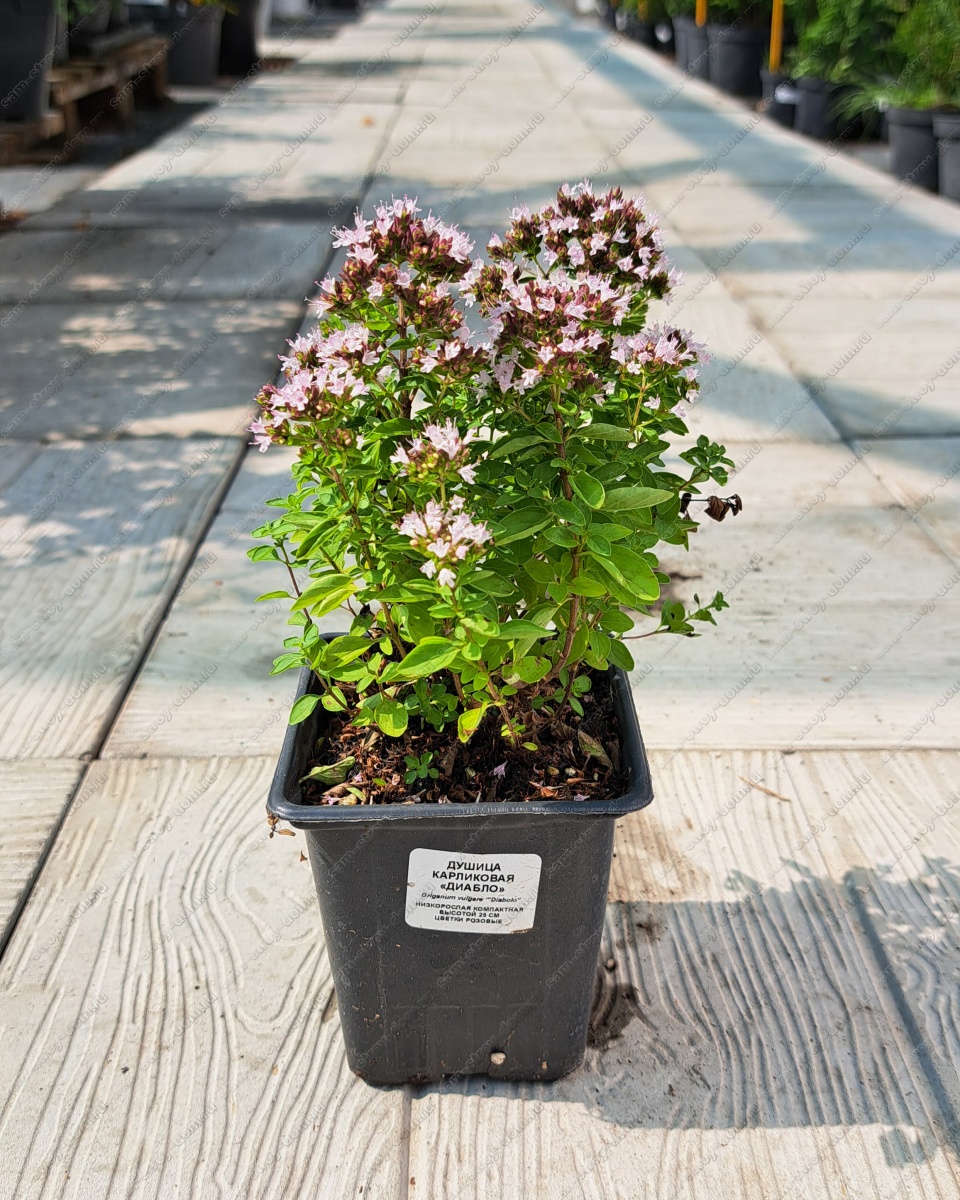 Все растение покрыто нежными щетинистыми волосками. Мелкие пурпурно-розовые цветки в шитковидной метелке. Цветет в июле — сентябре. Стебель ползучий. Куст компактный. Листья мелкие, яйцевидной формы, матово-зеленые с приятным ароматом. Душица нетребовательна к почве, но предпочитает сухие, проницаемые, содержащие кальций. Светолюбива Все многолетние как правило не прихотливы. Растения с закрытой корневой системой, в можно высаживать с весны до осени. Необходимо помнить, что разные многолетники, по-разному относится к солнцу. Если почва бедная, в лунку необходимо внести плодородной земли. Душица – солнцелюбивое растение, которое не выносит застоя влаги в почве, поэтому её лучше высаживать в открытом солнечном месте в сухой рыхлой почве. Ямка для цветка с закрытой корневой системой, должна быть немного больше емкости. Аккуратно достать растение из контейнера, не повредив при этом корни. Опустить в лунку растение и засыпать землей все пустоты. Далее необходимо тщательно пролить растение.