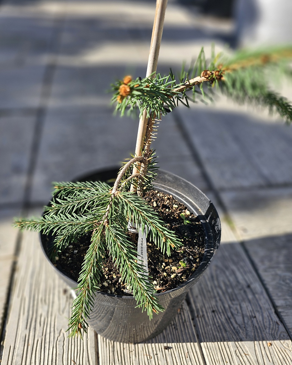 Необычный естественный плакучий сорт ели, найденный в английском лесу в конце 19го века. Названа Инверсой из-за свисающих до самой земли ветвей.