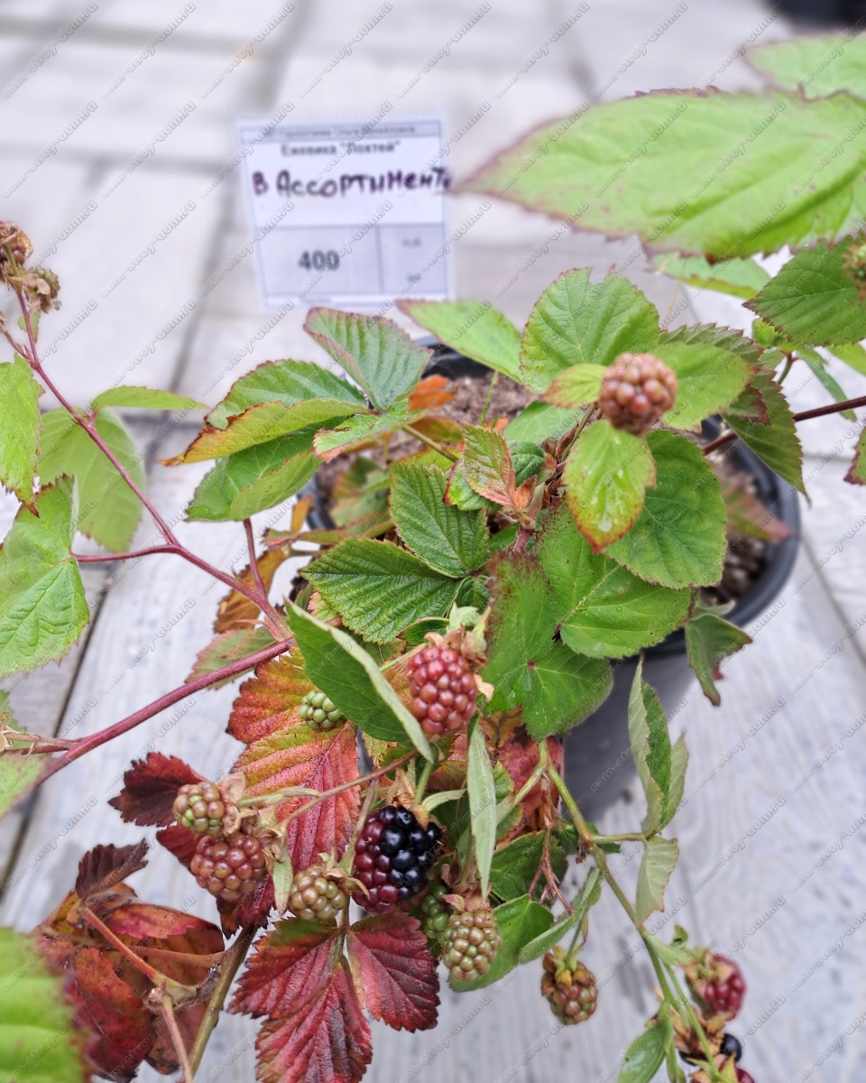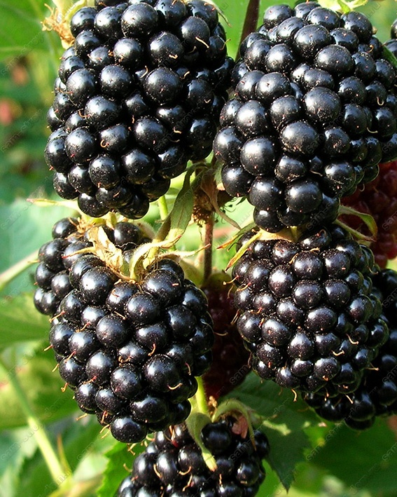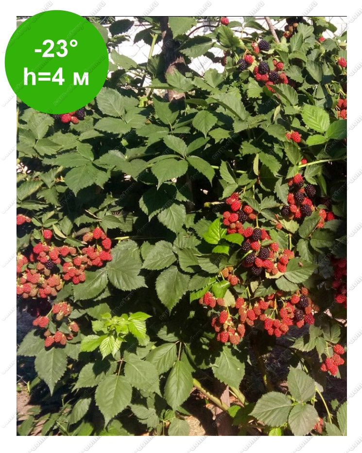 Урожайный сорт с полустелющимися бесшипными побегами длиной до 4 м и кожистыми изумрудно-зелеными листьями. Побеги нуждаются в опоре. Цветы белые, собраны в соцветия, ягоды крупные, весом до 12 гр, с черной глянцевой шелковистой кожицей.