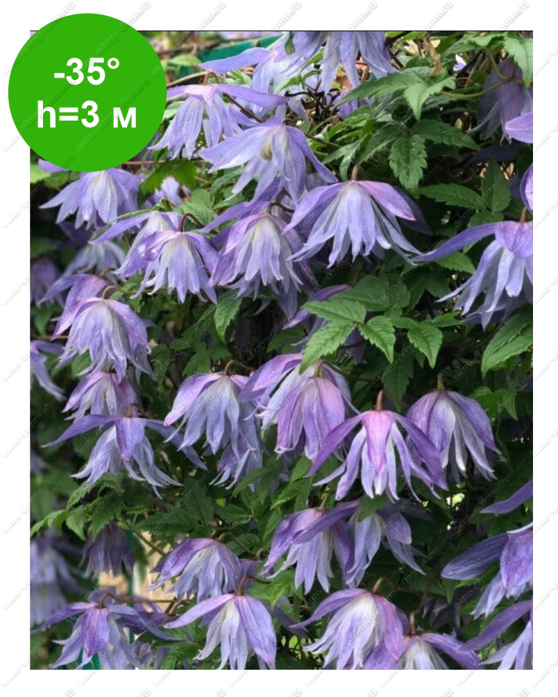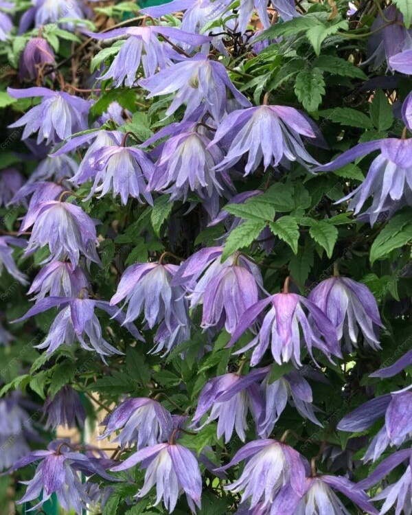 Клематис сорта Сесиль относится к группе Атрагене (княжик). Растение высокое – до 2,5 м, лиана пышная. Плеть обвивает стволы деревьев и растущие рядом кусты. Нижние листья ровные, одиночные. Верхние – тройчатые на длинных черешках. Цветки махровые нежно-сиреневого цвета с голубым оттенком, колокольчатой формы – до 7 см в поперечнике, с 4 чашелистиками. Чашелистики ланцетовидные длиной до 7 см, они тоже являются частью цветка, так как имеют фиолетово-голубую окраску со светлой окантовкой. Сорт Сесиль цветет в 2 этапа. Сначала растение вступает в фазу цветения в самом начале летнего сезона. В этот момент цветут прошлогодние побеги. В конце лета наступает вторая фаза, на фоне которой цветут побеги нынешнего года. Чтобы корни сорта Сесиль окрепли скорее, в первый год не нужно давать растению цвести. Потребуется удалять сформированные бутоны.