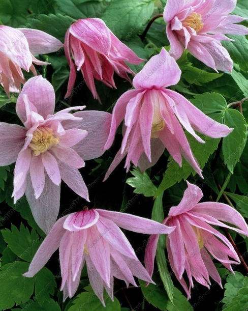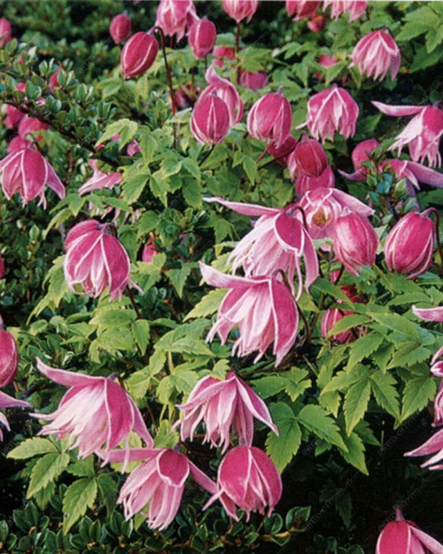 Клематис Маркхамс Пинк (Markhams Pink) - княжик, объединяющий в себе красоту нежных оттенков и приятных ароматов! Это один из ранних и обильноцветущих сортов (с мая по июнь), с яркими полумахровыми пурпурно-розовыми цветками.