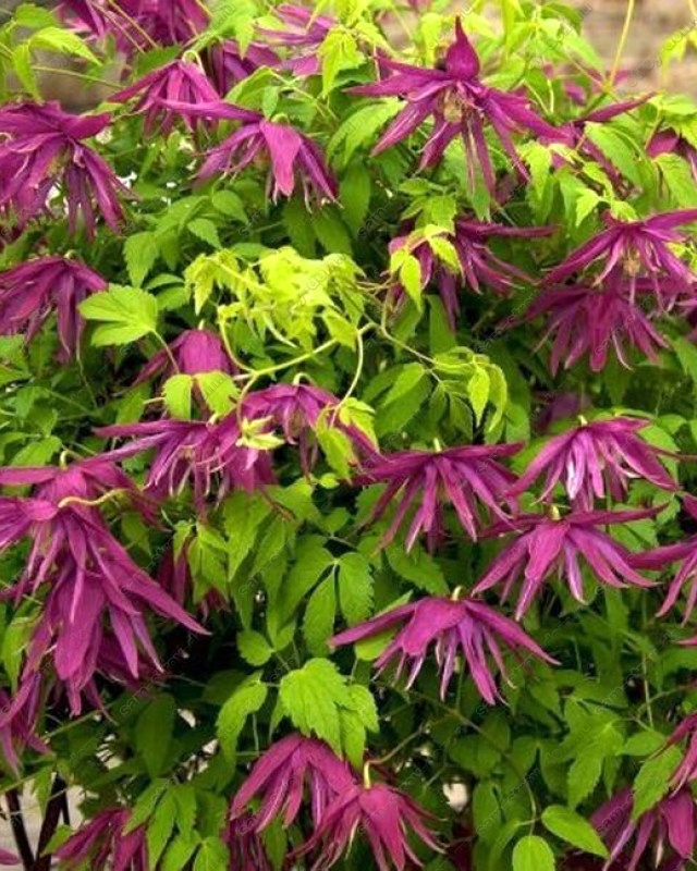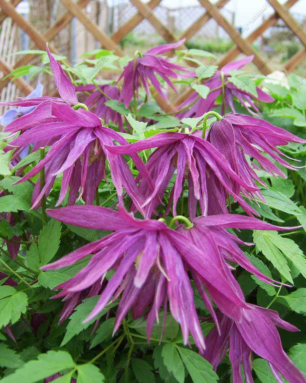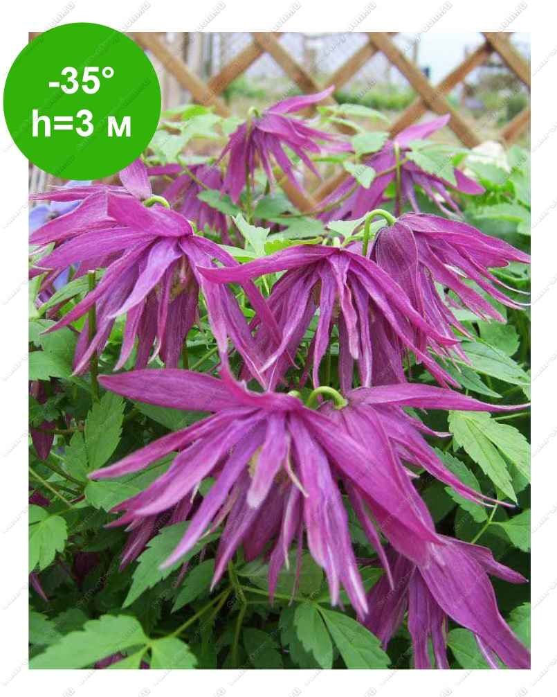 Клематис Октопус (Octopus) - шикарный княжик. Остроконечные лепестки, собранны в полумахровые цветки пурпурно-розового цвета с лимонно-жёлтым центром. Цветёт весной на прошлогодних побегах. Повторное цветение летом.