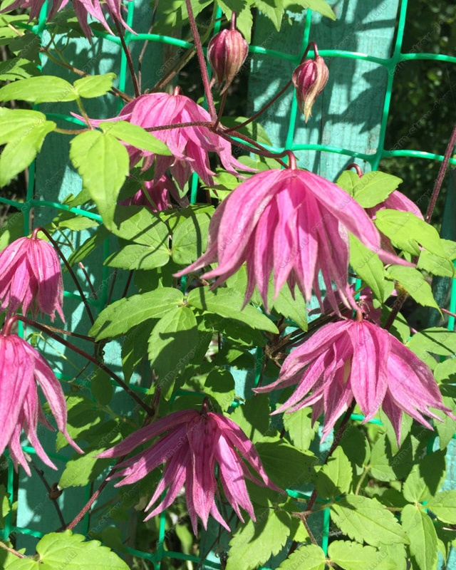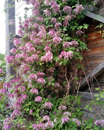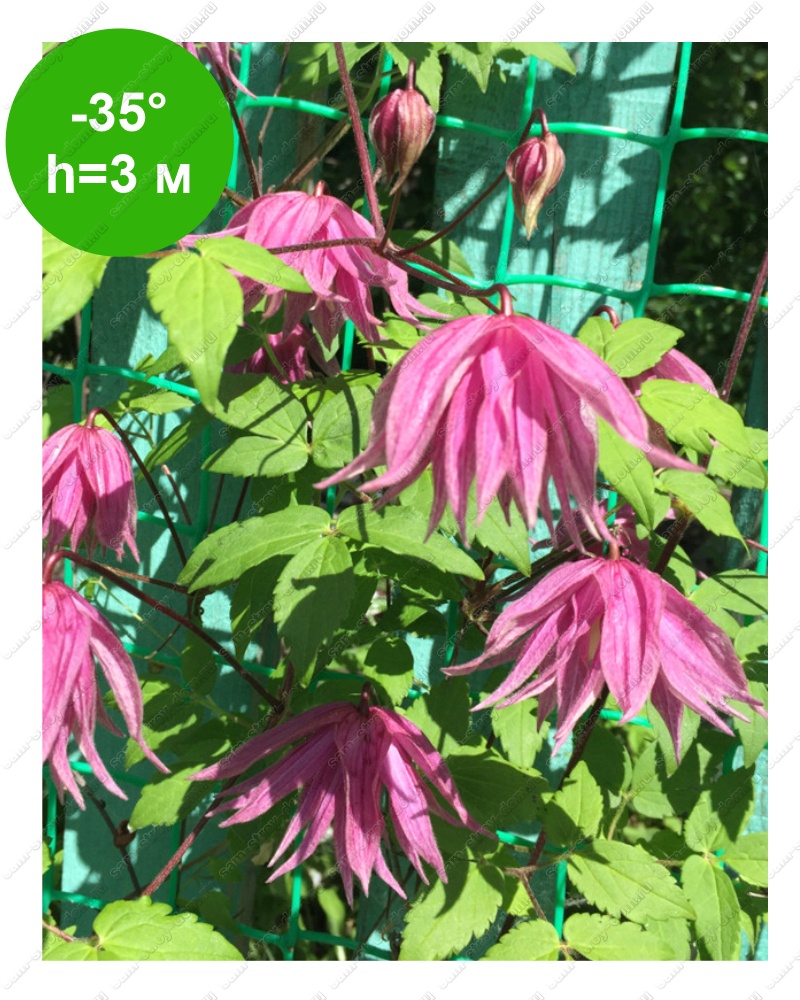 Цветки махровые, колокольчикообразные, свешивающиеся, диаметром 10-12 см, кремово-пурпурного цвета, приятно пахнущие грейпфрутом. Достигает высоты 2-3 м. Период цветения май, иль-август. За опоры цепляется листовидными черешками. Любит хорошо освещенные места, но не слишком жаркие. Переносит полутень. Морозостоек и неприхотлив.
