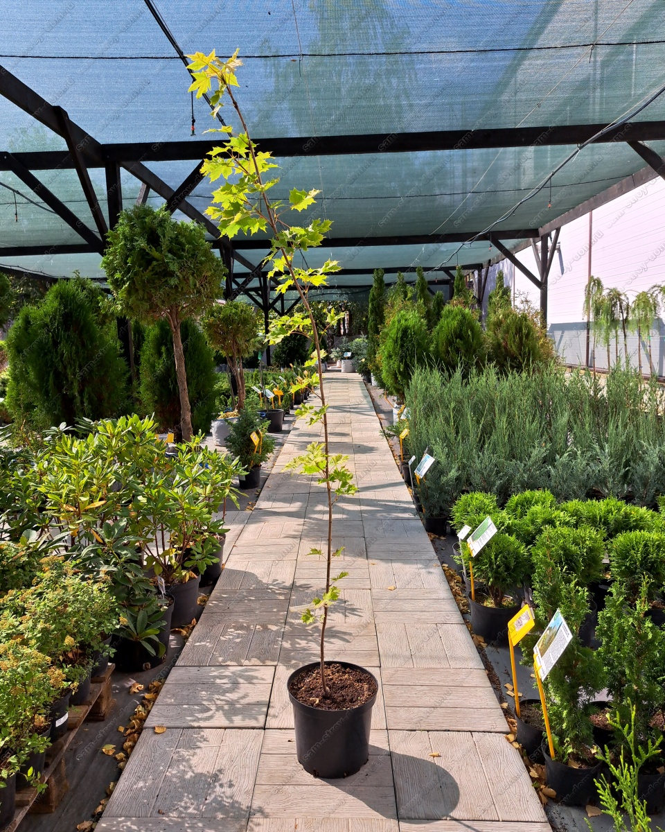 Особенно прекрасен клён в период цветения, когда он покрывается красивыми жёлтыми цветками, которые образуют кистевые соцветия. Клён остролистный широко распространен в городском озеленении, им украшают дворы и скверы, аллеи и бульвары.