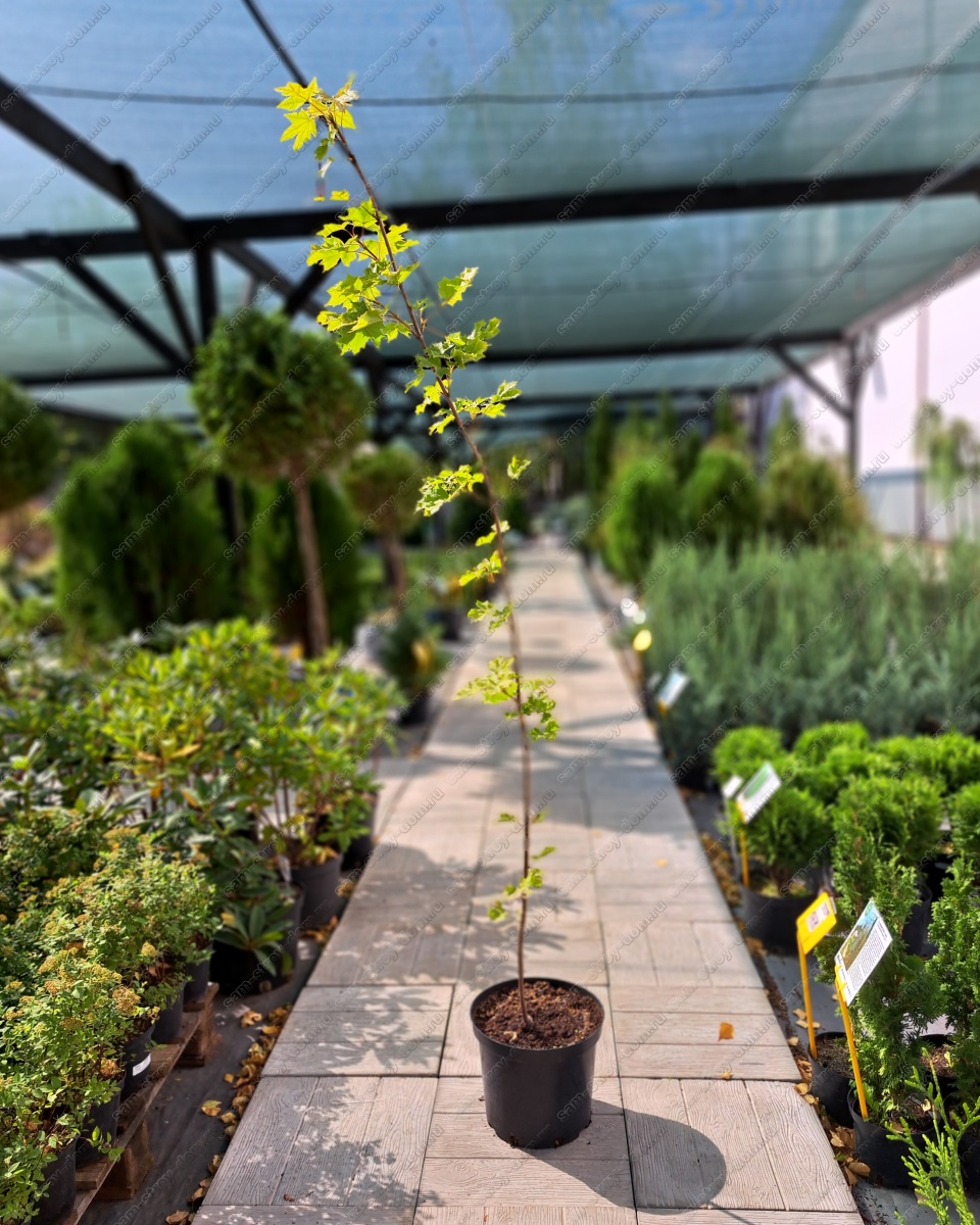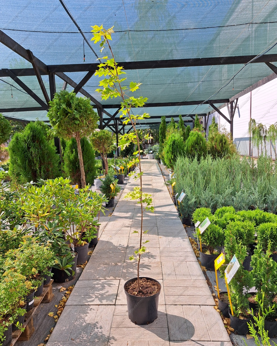 Лиственное дерево с красивой округлой кроной и очень декоративными пяти лопастными листьями. Летом они красивого зелёного цвета, а по осени окрашиваются в оранжевые и жёлтые оттенки.