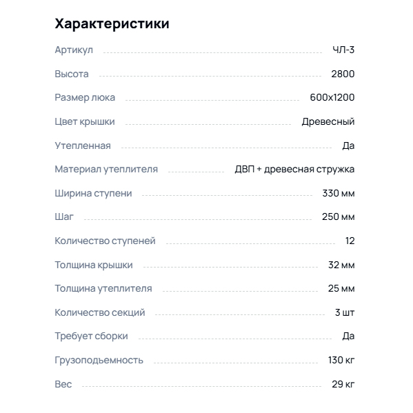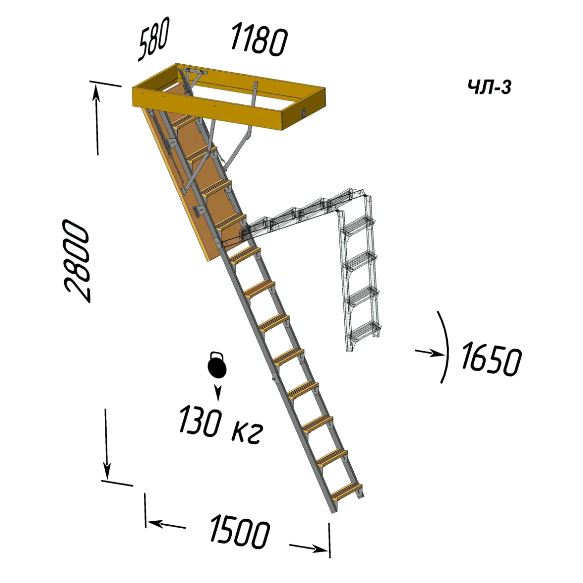 КОМБИНИРОВАННАЯ ЧЕРДАЧНАЯ ЛЕСТНИЦА 600Х1200 L-2800 ЧЛ-3