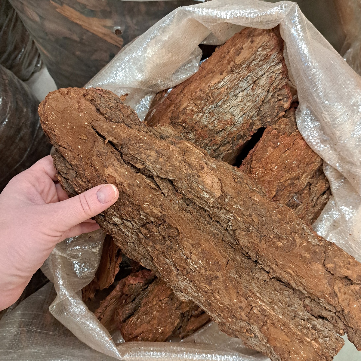 Кора сибирской лиственницы фракция 6-15 см (60 литров)