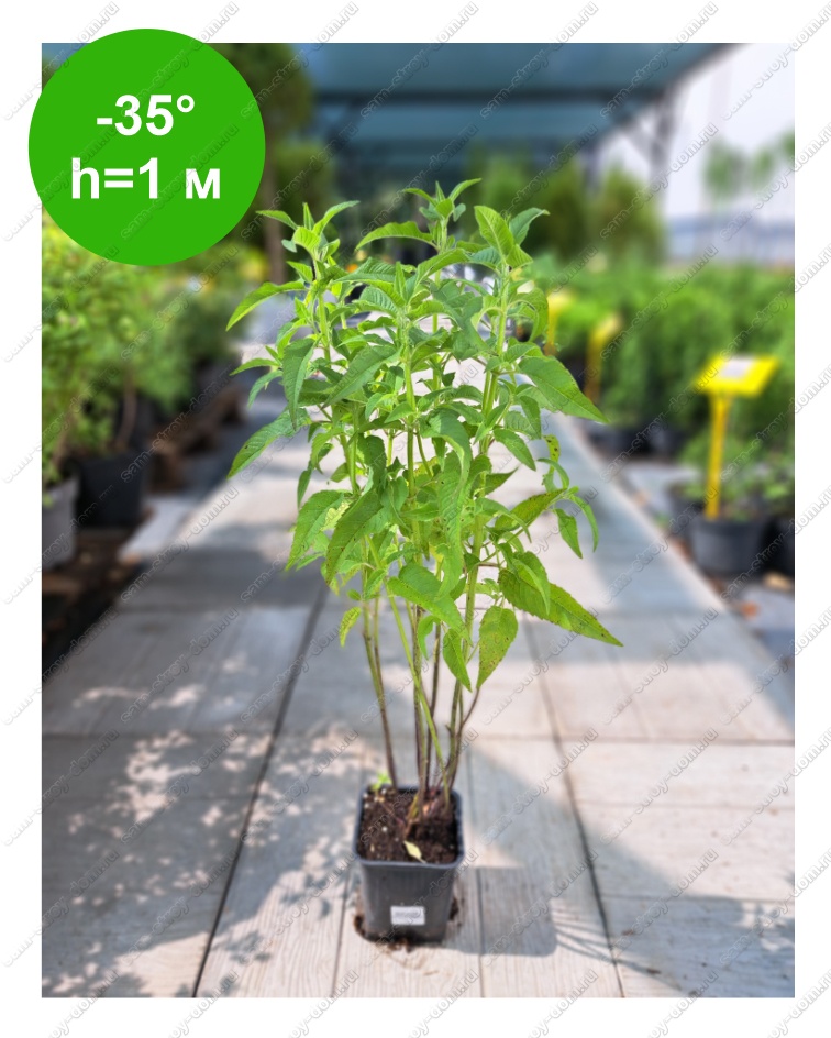 Имеет очень яркие фиолетовые цветки. Традиционный фаворит среди многолетников. Листья зубчатые, продолговато-ланцетные, имеют восхитительный аромат и большую устойчивость к мучнистой росе. Выведена из диких североамериканских видов. Цветет в июне-августе.