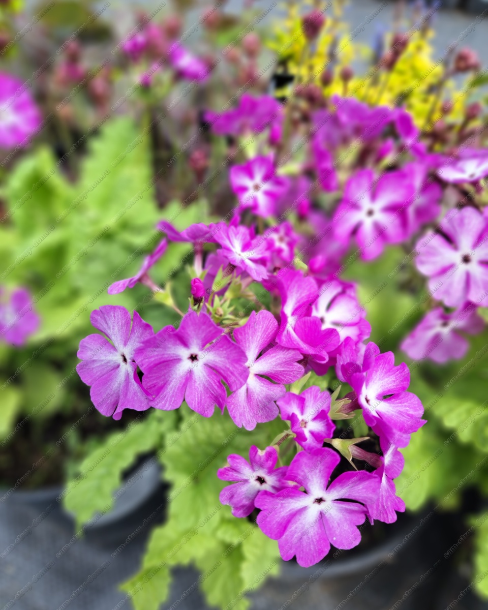 Примула Зибольда — многолетнее травянистое растение до 15-20 см. высотой, с тонким, длинным, ветвящимся корневищем. Листья на длинных черешках, продолговато-овальные, крупнозубчатые, опушенные, отмирающие на зиму. Цветки розово-лиловые с белым просветлением в центре, крупные, до 2,5-3 см. в диаметре, собраны по 6-15 штук в рыхлые зонтиковидные соцветия.