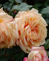 Цветки: крупные (8–12 см в диаметре), густомахровые (65–75 лепестков), с чашевидной формой. Окраска меняется в зависимости от погодных условий: в прохладную погоду лепестки розовеют, в жаркую — приобретают абрикосовый цвет с желтоватым отливом.