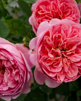 Цветки: диаметром 6–8 см, густомахровые, с 70–80 лепестками. Бутоны округлой заострённой формы, коралловые с красным подтоном. По мере раскрытия лепестки приобретают лососёво-розовый оттенок. Изначально цветы имеют чашевидную форму, но затем она переходит в розетковидную.