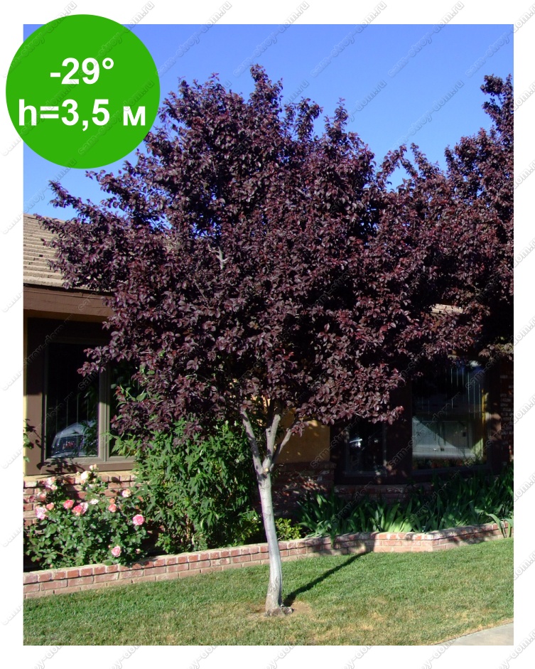 Весной дерево украшают множество шарообразных розоватых цветов, летом - пурпурные листья, осенью - красные, желтые или оранжевые плоды. Дерево невысокое - 3.5м. Предпочитает светлое место или полутень и влажную плодородную почву. Отличается высокой зимостойкостью.
