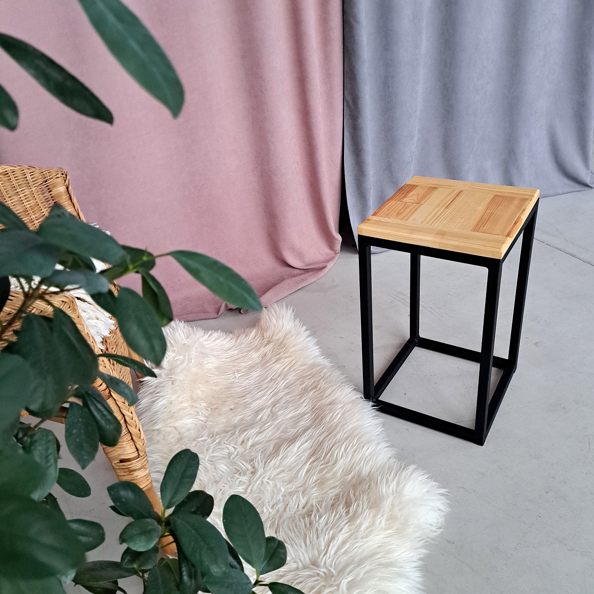 Сиденье табурета изготовлено из натуральной древесины хвойных пород толщиной 18 мм – это качественный материал, покрыт яхтным лаком. Каркас - стальная профильная труба 20х20 мм с покрытием черной матовой эмалью, которое надежно защищает от коррозии. Железные ножки оснащены пластиковыми либо войлочными накладками (зависит от модели табурета), защищающими пол от повреждений.