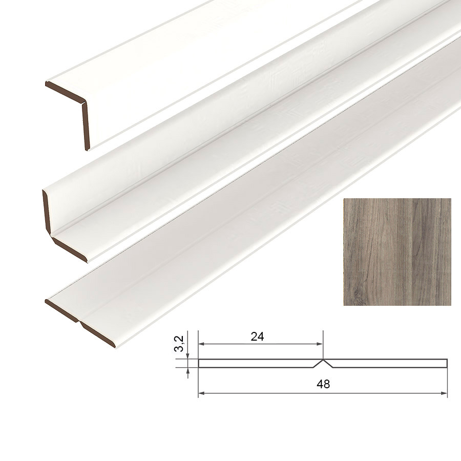 Универсальный угол для МДФ панелей используется для завершающих работ по отделке внешних и внутренних углов при монтаже стеновых панелей МДФ. Финишные уголки для панелей МДФ представляют собой две планки, соединенные пленкой. Сгибая их в одну сторону, получаем внешний угол, сгибая в другую - внутренний.