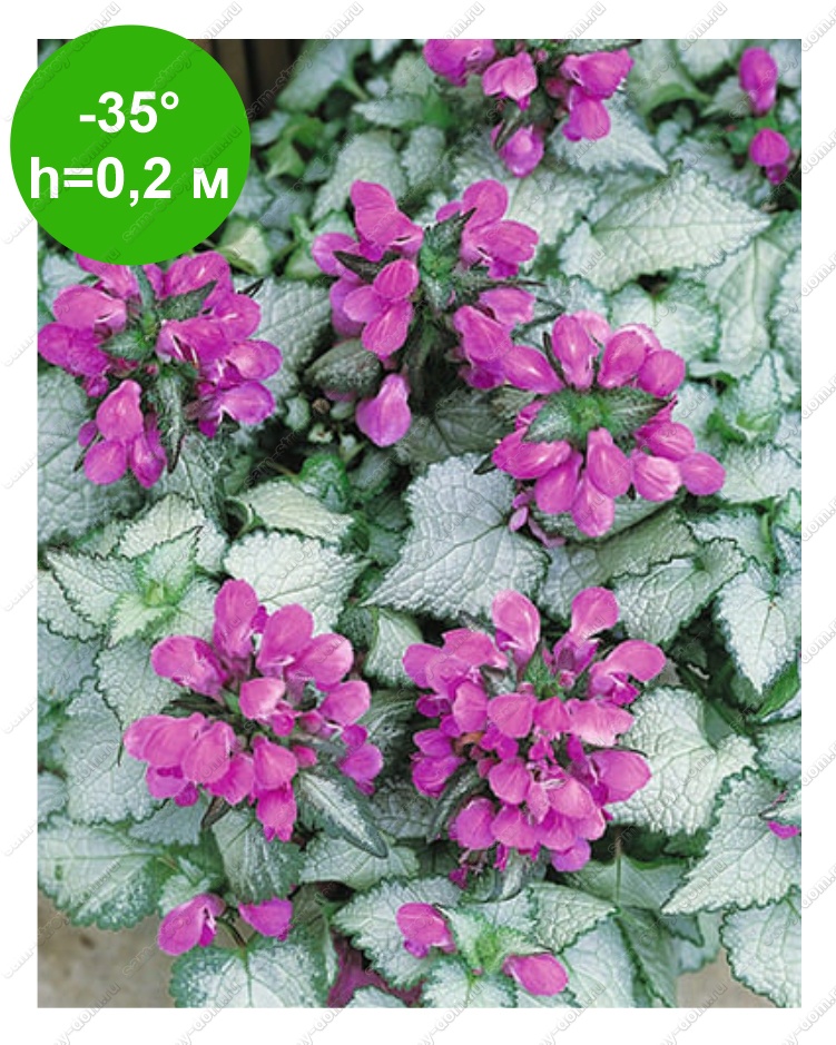 Красивый сорт со стелящимися ветвящимися побегами, листья похожи на листья крапивы, их поверхность серебристая, с темными прожилками и темно-зеленой каймой. Листья позволяют сорту не терять привлекательности даже после окончания цветения. Цветет с конца мая до начала июля пурпурно-розовыми цветами длиной 2-3 см, собранными в мутовчатые соцветия. Используютт для создания растительного ковра, украшения переднего плана цветника, миксбордера, подпорной стенки, каменистого сада, альпинария, оформления пейзажной композиции с хвойниками, декоративными кустарниками и многолетними цветами. Растение неприхотливо, морозостойко, обладает крепким иммунитетом. Для посадки подойдет прохладный участок в полутени или в кружевной тени под кронами деревьев, увлажненный, дренированный грунт. Высота побегов зависит от питательности почвы, на бедном грунте побеги ниже. Уход за ясноткой сводится к поливу и обрезке отцветших соцветий.
